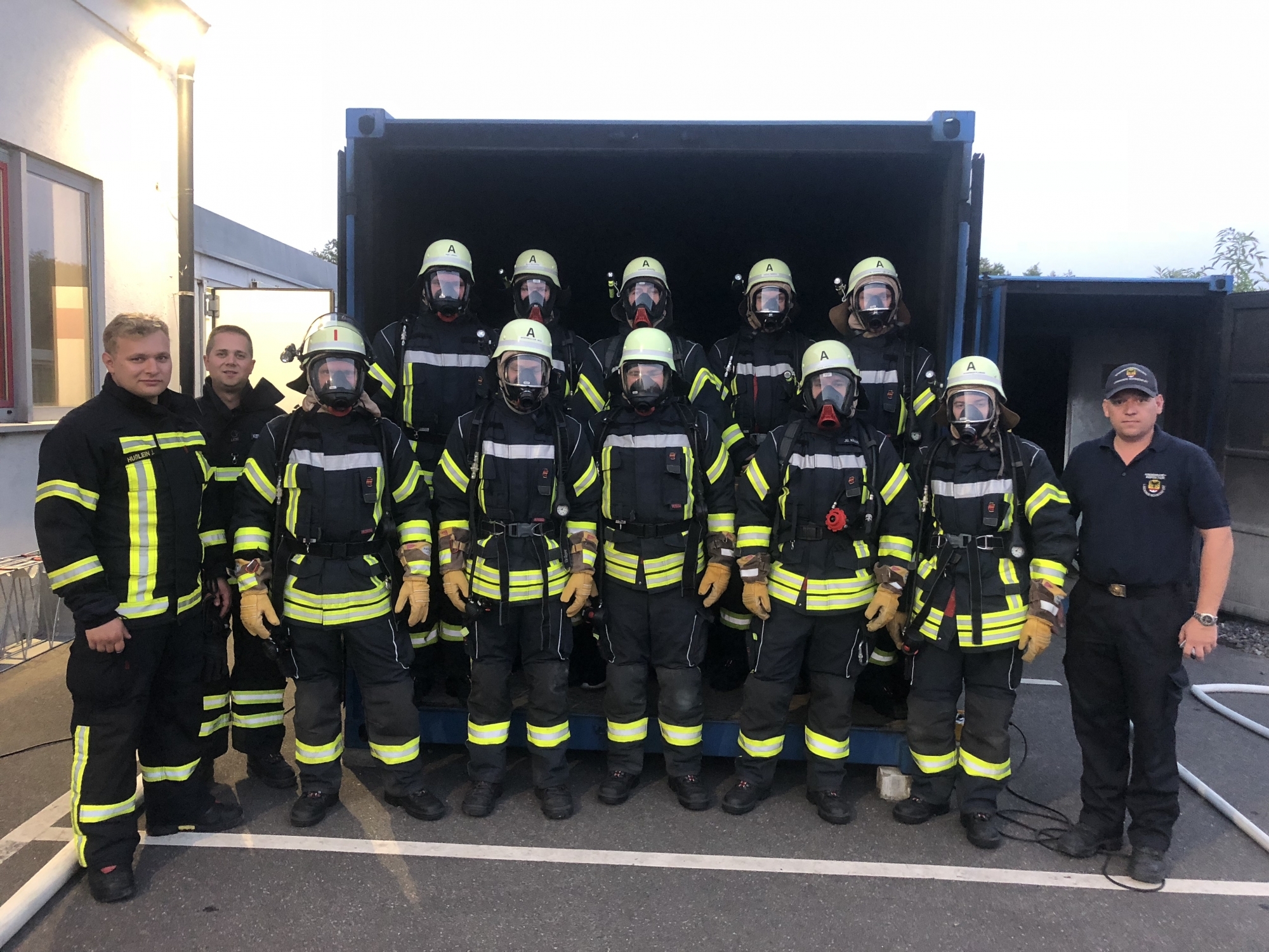 10 Kameraden der Freiwilligen Feuerwehr Pfändhausen absolvierten am 28.08.2018 die Realbrandausbildung im Ausbildungszentrum in Niederwerrn. Die Realbrandausbildung ist eine ergänzende Weiterbildung für Atemschutzgeräteträger. Die Lehrgangsteilnehmer üben das richtige Verhalten im Brandraum, sowie das Retten von Personen und die Brandbekämpfung in Gebäuden. Zum Letzteren gehört auch das Verhalten bei gefährlichen Situationen (z.B. Auftreten eines Flashovers) während des Innenangriffs.