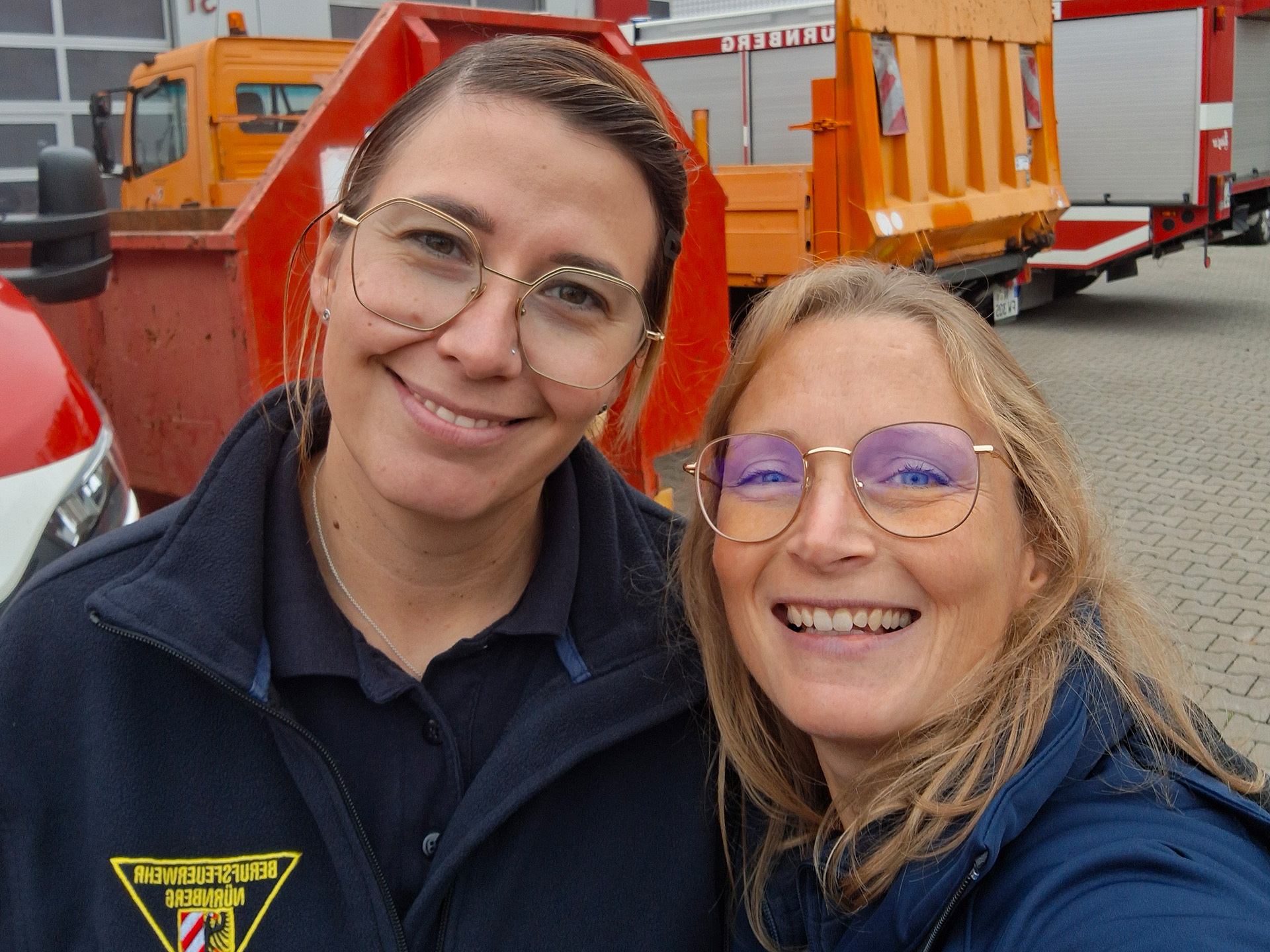 Nach der Ankunft in Nürnberg gab es zunächst eine reichhaltige Brotzeit, die vom Kinder- und Jugendfeuerwehrverband bereitgestellt wurde. Gut gestärkt ging es anschließend zur Feuerwache 4 der Berufsfeuerwehr Nürnberg, wo die Teilnehmenden in zwei Gruppen durch die Wache geführt wurden. Eine der Gruppen wurde von Doni begleitet – vielen noch bekannt aus ihrer Zeit bei den Feuerwehrfrauen im Landkreis Schweinfurt. Sie gewährte spannende Einblicke in die Arbeit der Berufsfeuerwehr, den Gerätschaften und beeindruckte mit interessanten Geschichten aus dem Einsatzalltag.