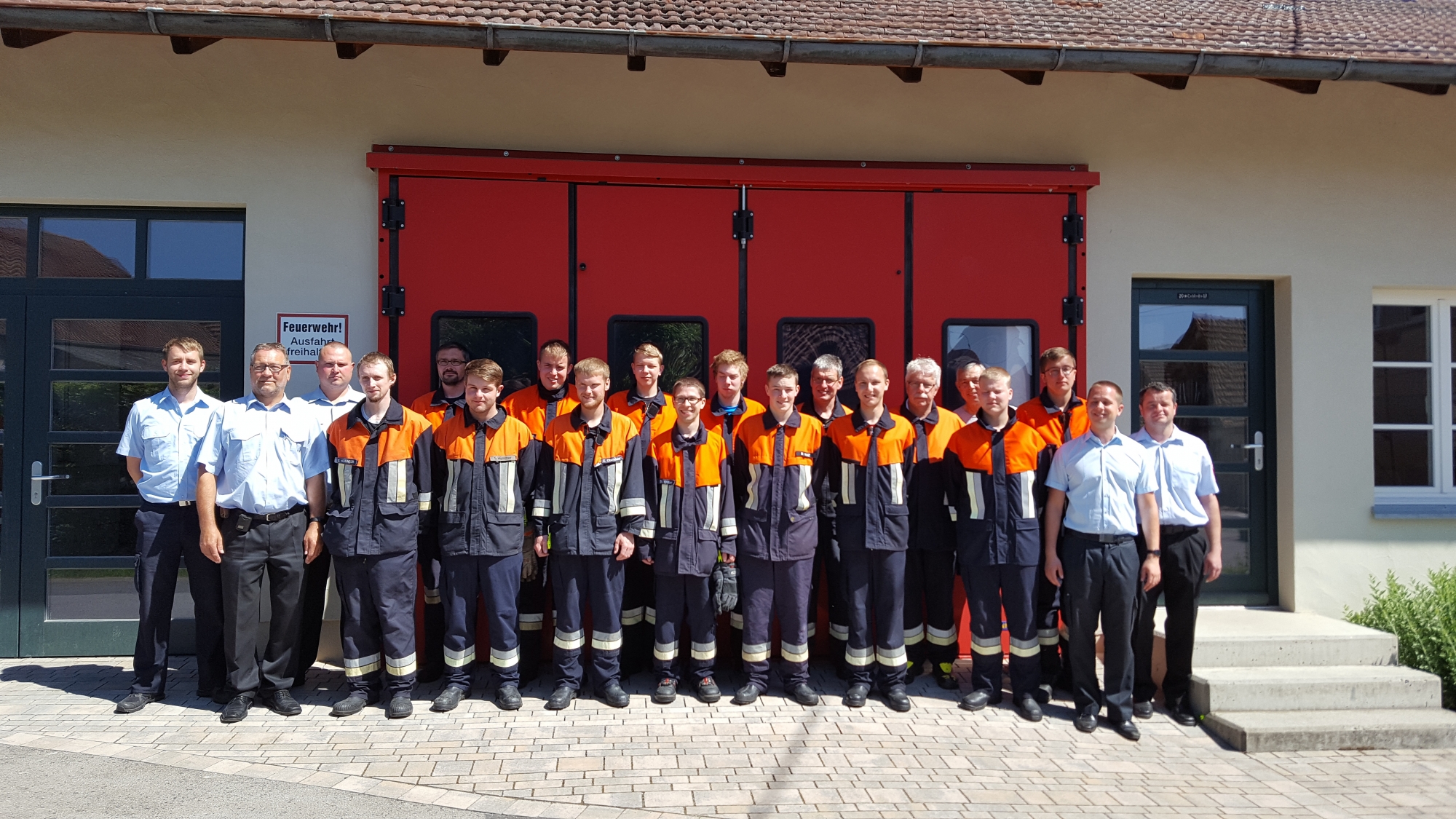 Birnfeld. Für schnelle Hilfe im Ernstfall muss jeder Handgriff sitzen. Um dies zu gewährleisten, wurde die Grundausbildung der Feuerwehr vor kurzem neu strukturiert und an aktuelle Entwicklungen angepasst. Vier Lehrgänge wurden dazu in der Modularen Truppausbildung (MTA) zusammengefasst. Die MTA beinhaltet nun die Ausbildung und Qualifikation zum Truppmann, Ersthelfer, Sprechfunker und Truppführer. Insgesamt umfasst die Ausbildung ein Basismodul mit 110 Unterrichtsstunden und ein Ausbildungs- und Übungsmodul mit 40 Unterrichtsstunden. Alle 14 neuen Truppführer wurden umfassend in den Themen Brandbekämpfung, (technische) Hilfeleistung, Erste Hilfe und ABC-Einsätzen ausgebildet. Neu für die 14 Feuerwehrmänner: Als Truppführer müssen sie jetzt auch noch die Verantwortung für ihren Trupp übernehmen. Dabei gilt es, Gefahren selbstständig zu erkennen, darauf zu reagieren, sie natürlich auch an den Vorgesetzten in richtiger Art und Weise zu melden und die folgenden Einsatzbefehle verantwortungsbewusst umzusetzen. Dieses Können mussten nun alle Prüflinge in der Abschlussprüfung am 27.05.2017 in Birnfeld beweisen. Hierbei wurden das theoretische Wissen in einem kniffligen schriftlichen Test sowie das „Handwerkszeug“ in insgesamt drei praktischen Prüfungen abgefragt. Dank einer guten Ausbildung und nicht zuletzt der hervorragenden Motivation der wissbegierigen Lehrgangsteilnehmer haben alle diese Abschlussprüfung bestanden. Herzlichen Glückwunsch! Bei einigen Absolventen zeigte sich, dass sie noch nicht am Zenit ihrer Feuerwehrkarriere sind, denn ihre hervorragenden Ergebnisse lassen vieles erhoffen. Einige Lehrgangsteilnehmer haben beispielsweise in der Zwischenzeit die Ausbildung zum Atemschutzgeräteträger erfolgreich abgeschlossen. Erfreut über die Ergebnisse gratulierten auch die Prüfer der Kreisbrandinspektion und der 2. Bürgermeister Winfried Reß. Es gilt Dank an alle zu sagen, die bei dieser Ausbildung mitgeholfen und unterstützt haben: Der Markt Stadtlauringen, die Kreisbrandinspektion Schweinfurt, das Ausbilder-Team und die Prüfer. Ganz nebenbei wurden in diesem Lehrgang neue Netzwerke geknüpft, die Feuerwehren lernten sich untereinander besser kennen und die Kameradschaft wurde gepflegt. Dies ist auch der dezentralen Ausbildung bei allen teilnehmenden Feuerwehren und der Motivation der Teilnehmer geschuldet.