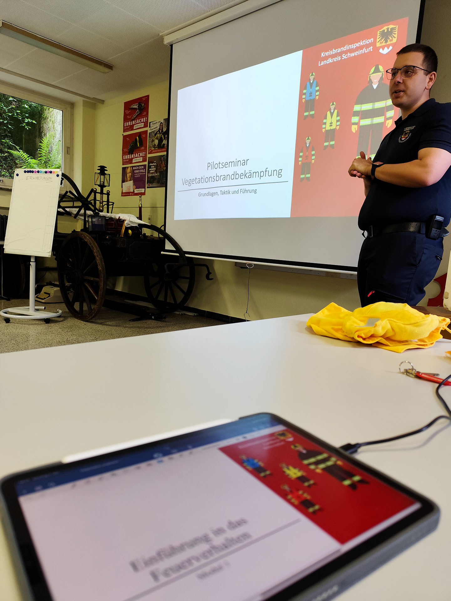 Das Pilotseminar wurde erstmal durchgeführt. Dafür verantwortlich zeigten sich der Kreisbrandmeister Christoph Steger und Kreisbrandinspektor Florian Zippel. Nach den äußerst positiven Rückmeldungen der Teilnehmer ist geplant, dieses neue Seminar weiter voranzutreiben und auf den gesamten Landkreis Schweinfurt auszudehnen. Nähere Informationen folgen zu gegebener Zeit.