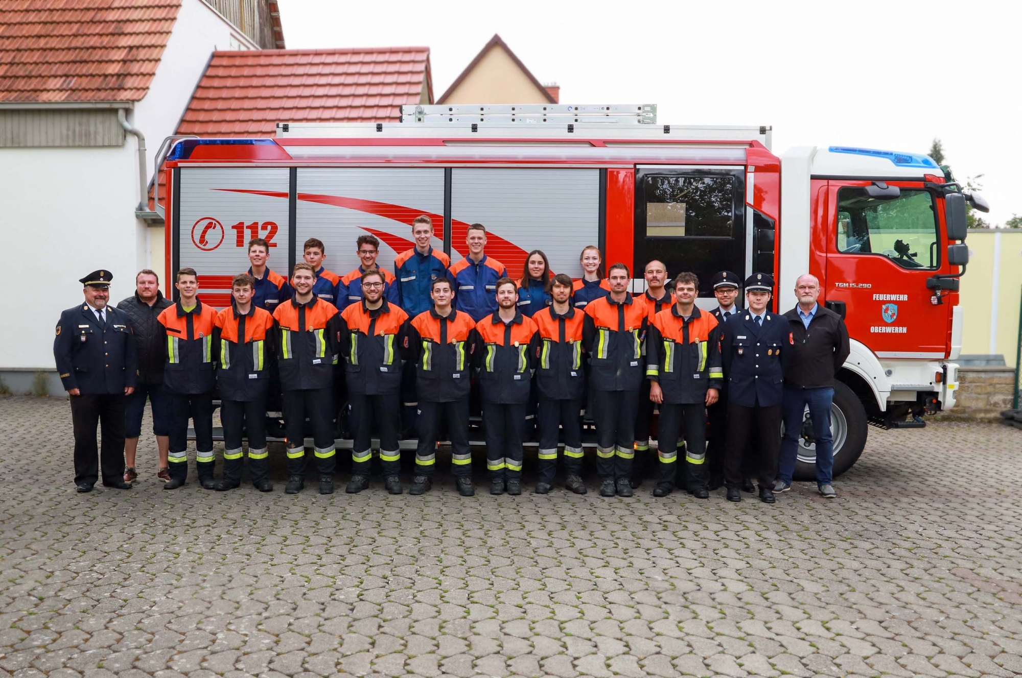 Bei der Leistungsprüfung „Die Gruppe im Löscheinsatz“ zeigten zehn aktive und sieben jugendliche der Feuerwehr Oberwerrn ihr Können. Ziel dieser Leistungsprüfung ist es innerhalb vorgegebener Zeiten, Knoten und Stiche auszuführen, eine Saugleitung zur Wasserentnahme zu kuppeln und den Wasseraufbau bis zur Brandbekämpfung realitätsnah zu üben. Außerdem müssen die Prüflinge ihre Kenntnisse in der Fahrzeugkunde unter Beweis stellen. Neben den sieben Jugendlichen, die alle erfolgreich die erste Stufe Bronze ablegten, konnten auch drei Kameraden die Endstufe 6 des Leistungsabzeichens in der Farbe Gold-Rot ablegen.