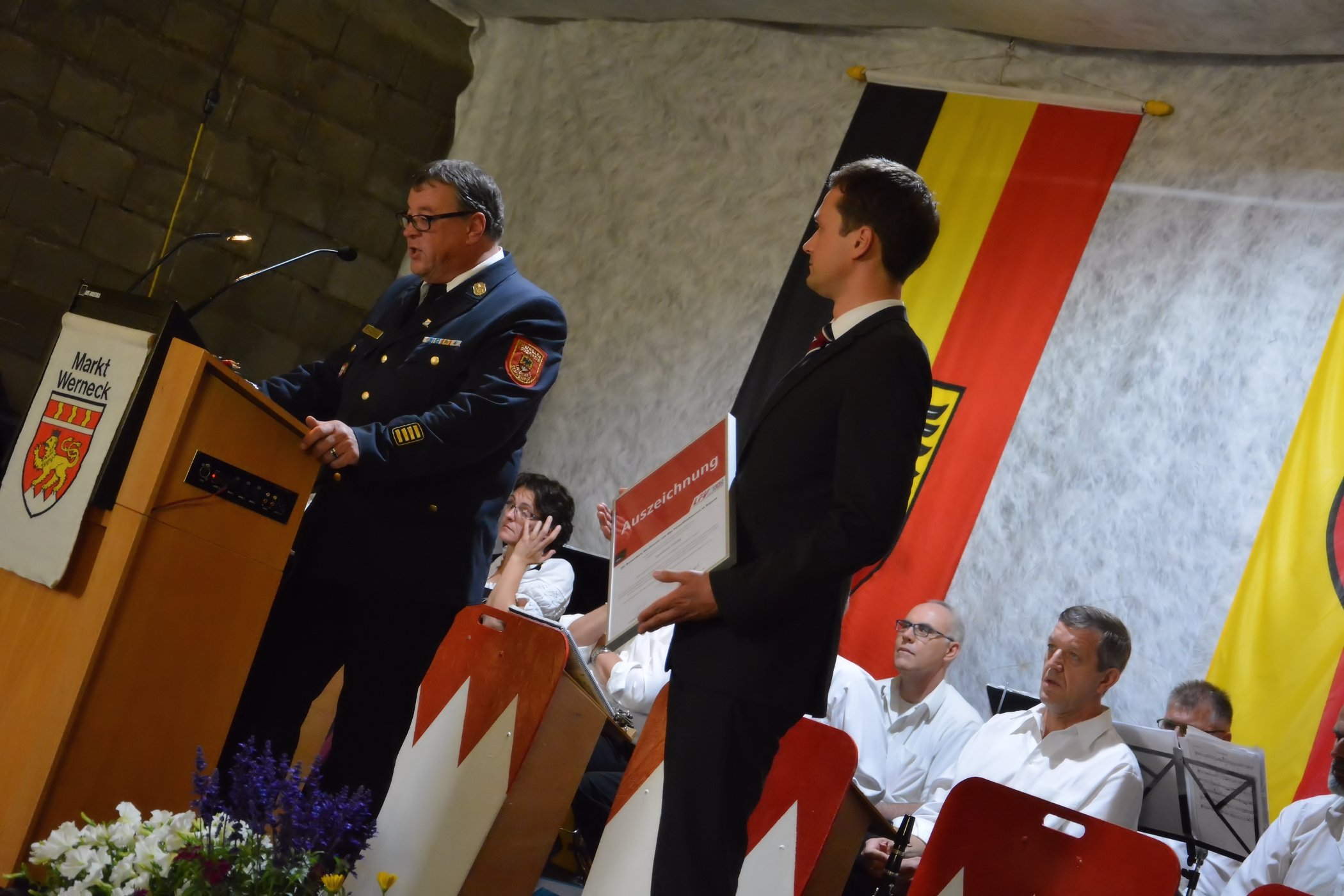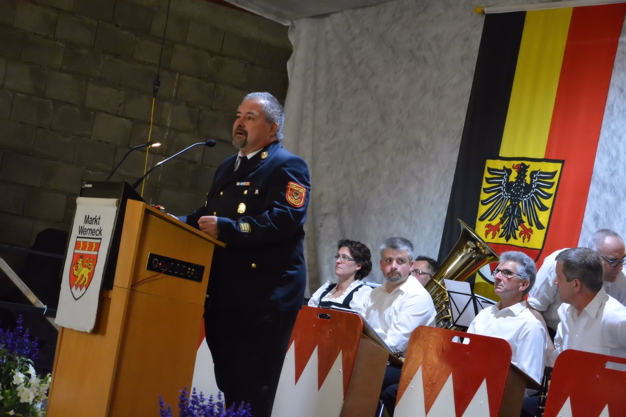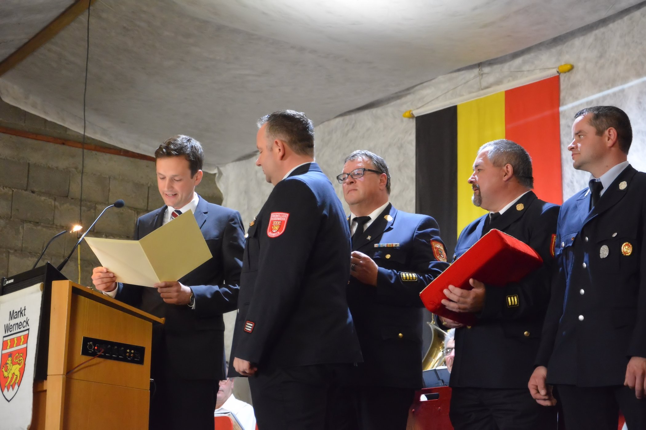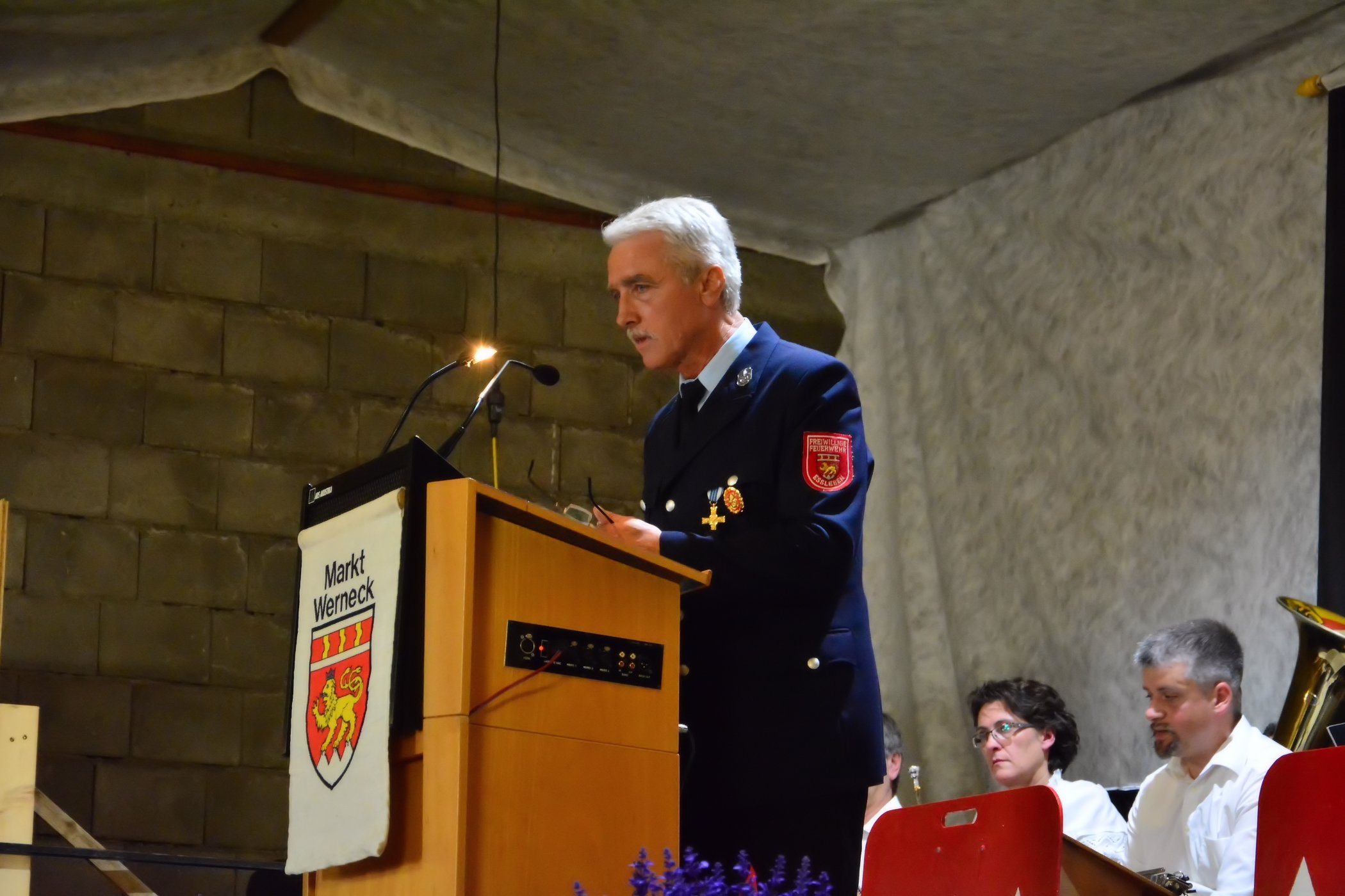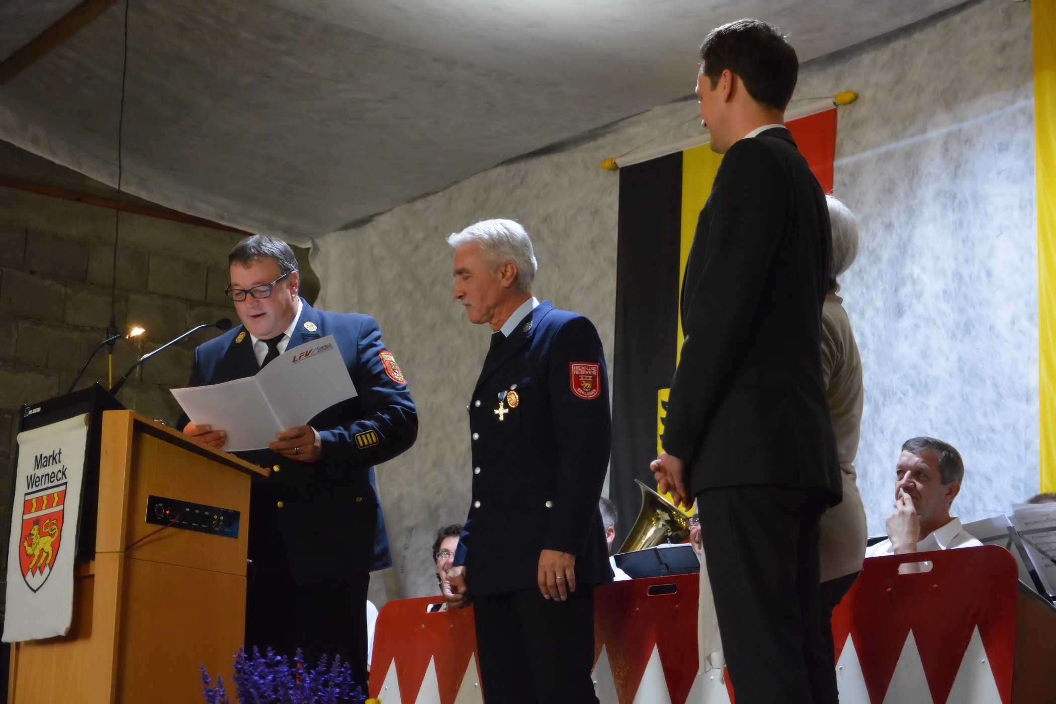 Eßleben / Werneck– An lässig des 33. Gemeindefeuerwehrtag vom Markt Werneck fand am Samstag, den 27.06.2015 in einem feierlichen Anlass zahlreiche Ehrungen statt. Unter den geladenen Gästen dürfte Vorstand Eugen Oestreicher von der Feuerwehr Eßleben unter anderem die Bürgermeisterin Edeltraud Baumgartl, Landrat Florian Töpper sowie die Kreisbrandinspektion mit der Abordnung Kreisbrandrat Holger Strunk, Kreisbrandinspektion Reinhold Achatz und den Kreisbrandmeistern Thomas Heffels und Walfried Fröhr begrüßen.