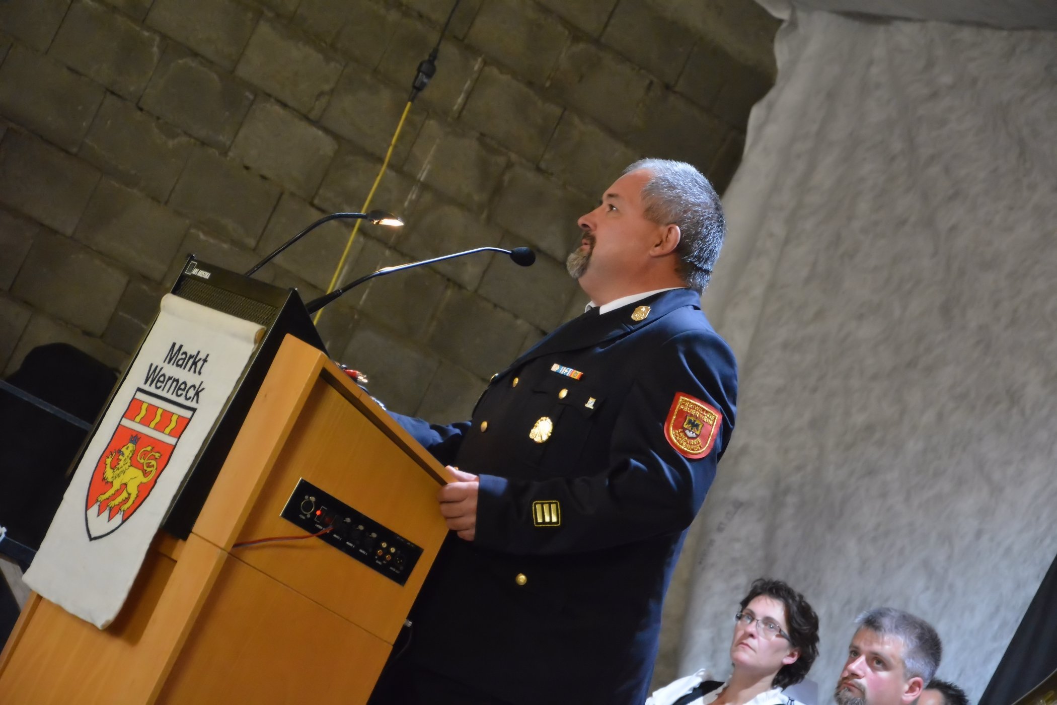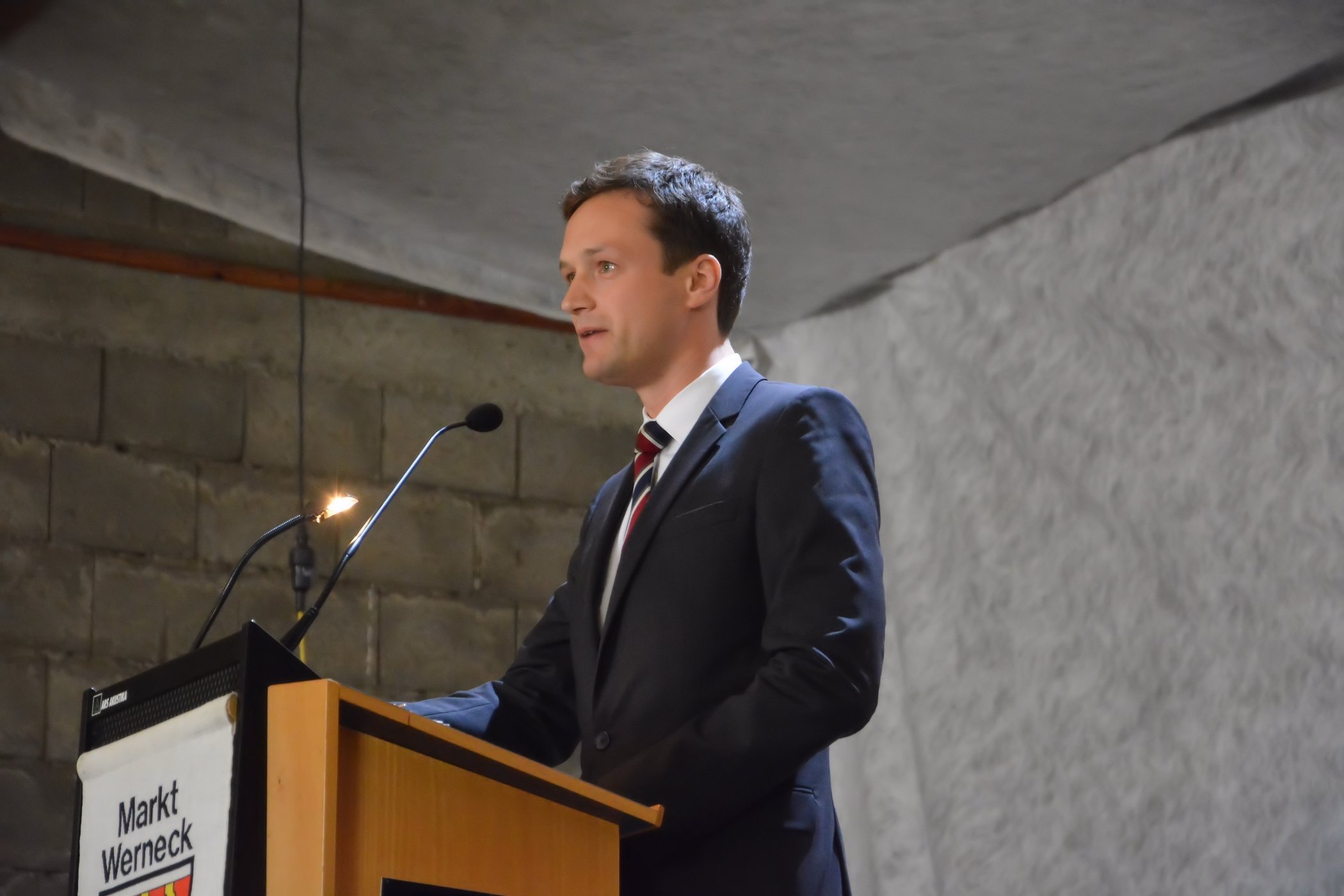 Landrat Florian Töpper dankte in seiner Ansprache vor allem der Feuerwehr Eßleben, für die Ausrichtung des 33. Gemeindefeuerwehrtages. Des Weiteren betonte Landrat Florian Töpper, dass die Feuerwehren im Landkreis Schweinfurt sowie die 13 Gemeindefeuerwehren vom Markt Werneck mit adäquater Technik ausgestattet sind.