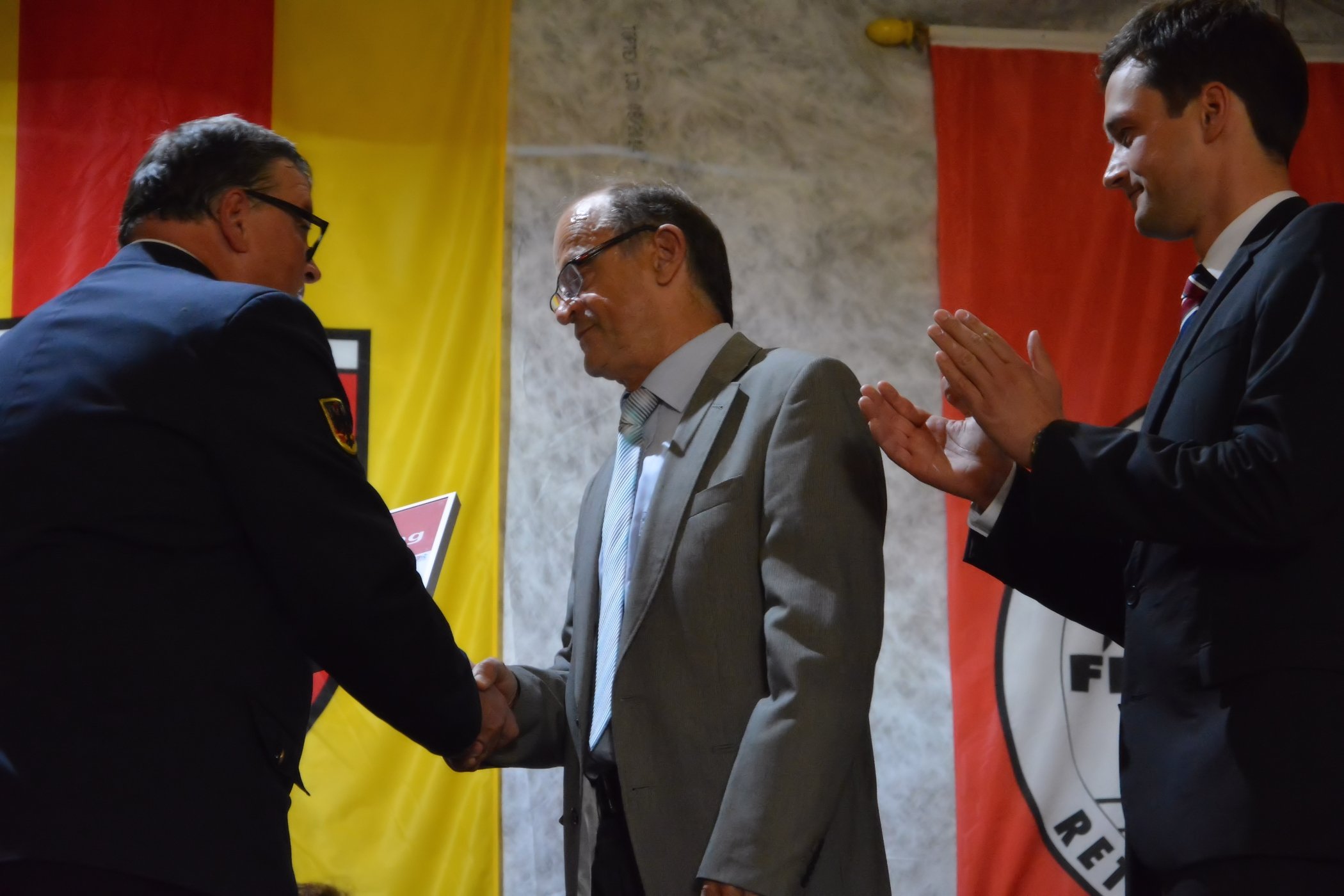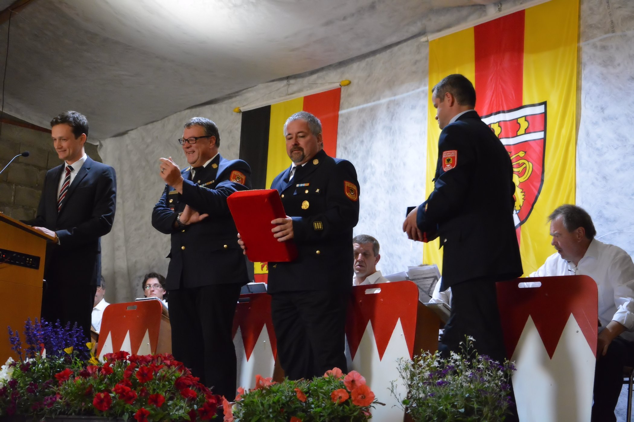 Im weiteren Verlauf des Abends übernahm Kreisbrandrat Holger Strunk und Landrat Florian Töpper Ehrungen für aktive Feuerwehrdienstleistende die 25 oder 40 Jahre im aktiven Feuerwehrdienst stehen.