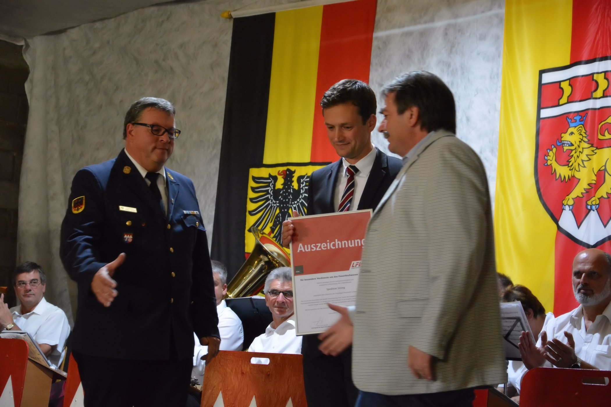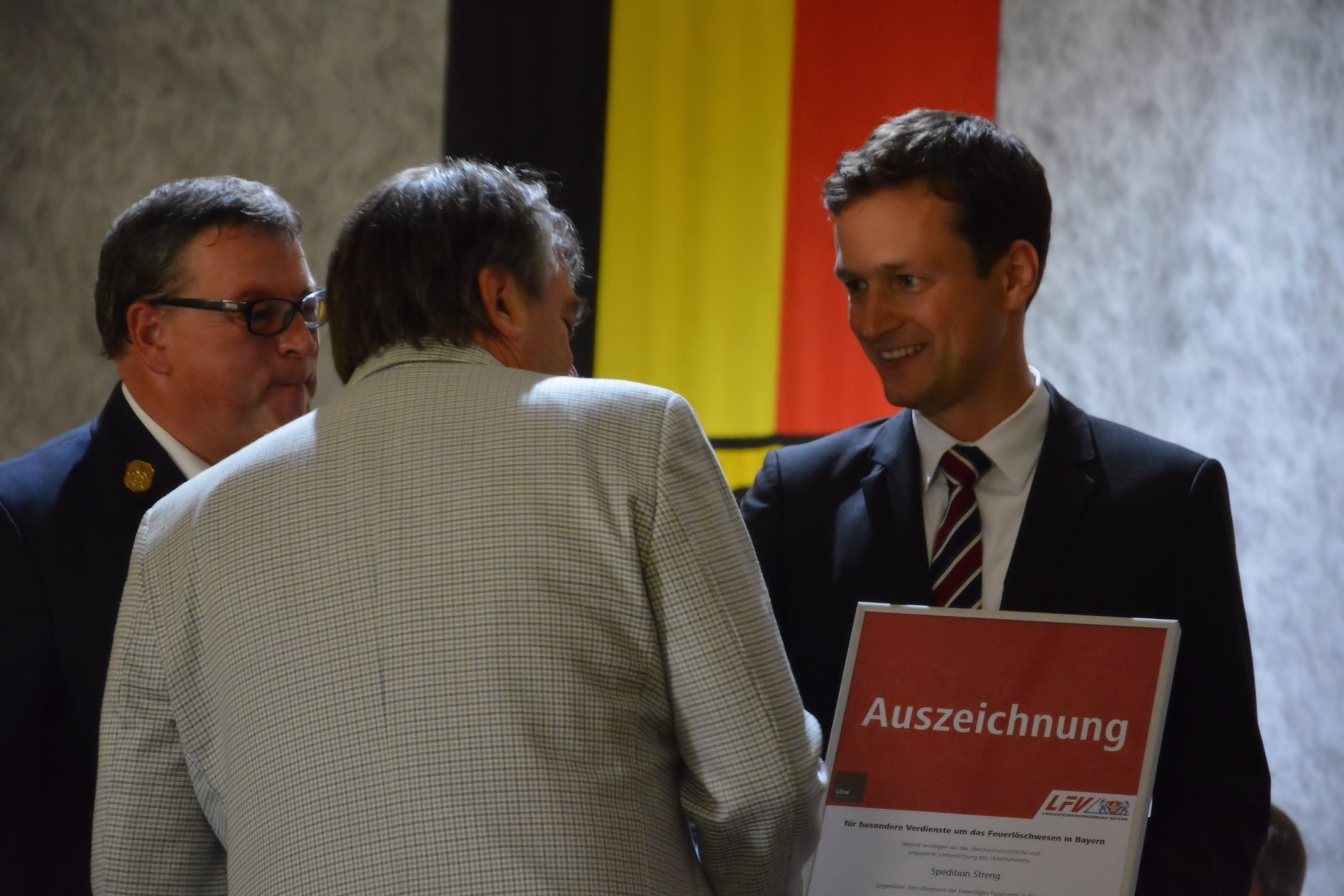 Ebenfalls erhielt die Firma Streng von Kreisbrandrat Holger Strunk und Landrat Florian Töpper die Urkunde „Partner der Feuerwehr“ vom Landesfeuerwehrverband Bayern. Bereits bei der Beschaffung des Feuerwehrautos von Eßleben im Jahr 2003 konnte die Firma Streng als Partner für die Feuerwehr gewonnen werden. Die Kosten für die Zusatzscheinwerfer auf dem Dach des Fahrzeuges einschließlich Einbau wurden von der Firma Streng übernommen.