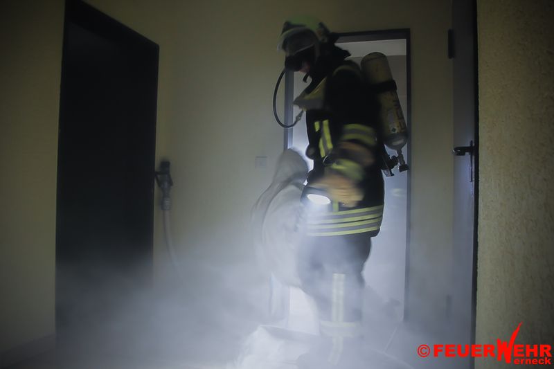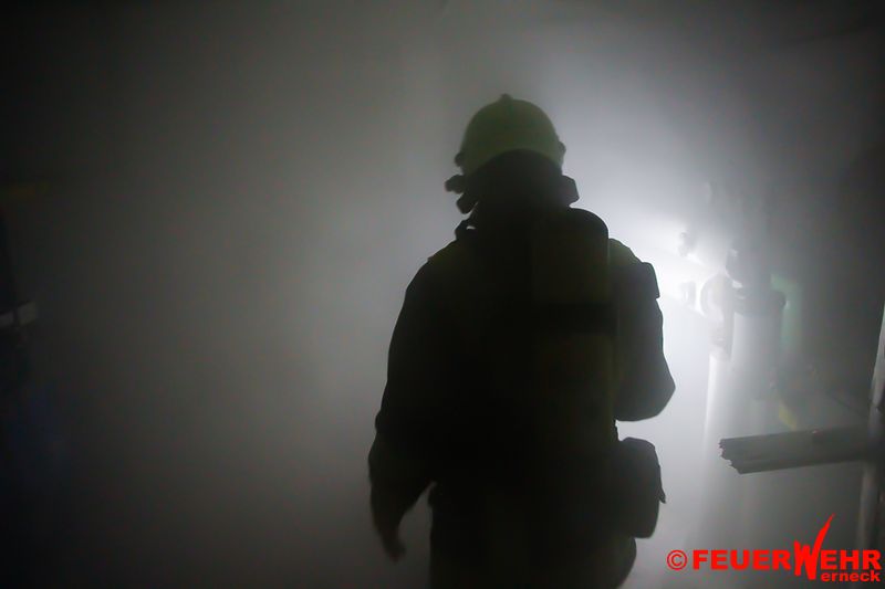 Diese Übung war jedoch als Brandschutzübung eine Nummer größer und so wurden 12 Personen als Vermisst gemeldet. Das Gebäude wurde mit vier Nebelmaschinen komplett verraucht und es mussten die Türen teilweise gewaltsam geöffnet werden um an die vermissten Personen zu gelangen.