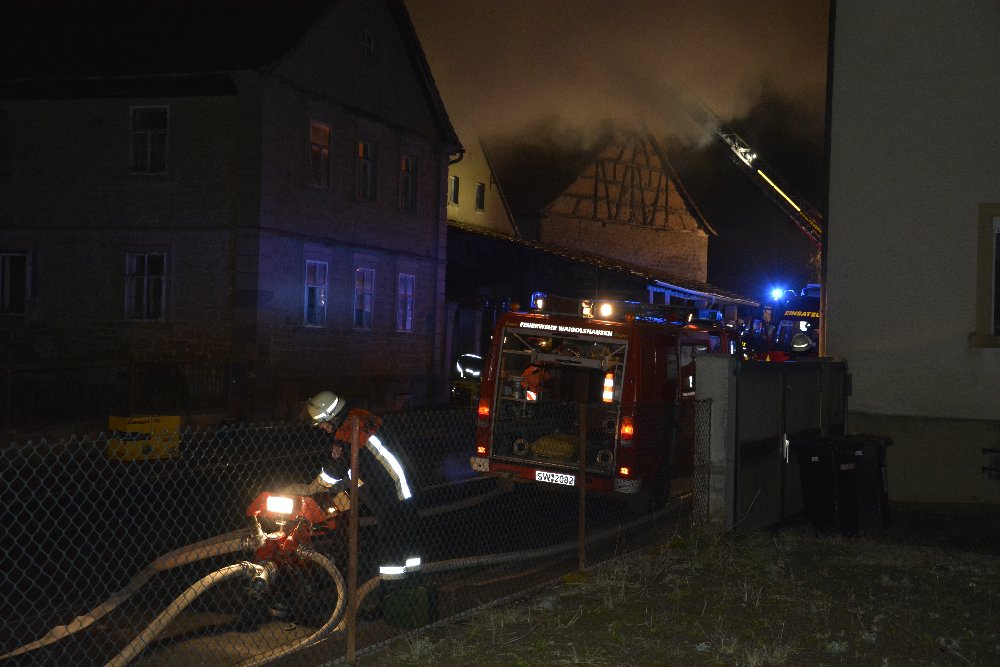 Den Wehrmännern gelang es den Brand in der Hauptstraße von Waigolshausen (Kreis Schweinfurt) zu löschen und ein Übergreifen des Feuers auf benachbarte Anwesen zu verhindern. Personen kamen nach Polizeiangaben nicht zu Schaden.