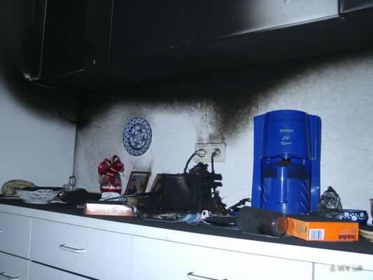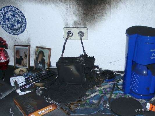 Bereits Anfang Februar kam es in Gerolzhofen zu einem ganz ähnlichen Vorfall. In der Nacht vom 7. auf 8. des Monats verursachte ebenfalls ein technischer Defekt einen Schwelbrand an einem Toastautomaten. Offenbar bemerkte die 75-jährige Bewohnerin den Brand noch, betrat die verrauchte Küche, stürzte dann aber vermutlich beim Versuch, das Feuer zu löschen oder das Fenster zu öffnen. Nach wenigen Atemzügen hatte die Frau eine so große Menge hochgiftiger Brandgase eingeatmet, dass sie ohnmächtig zusammenbrach, kurze Zeit später war sie tot. Erst ihre Angehörigen fanden sie am nächsten Morgen; das Feuer war von selbst auf Grund Sauerstoffmangels erstickt. Doch obwohl lediglich der Toaster gebrannt hatte, verteilte sich der schwarze Ruß in der ganzen Wohnung.