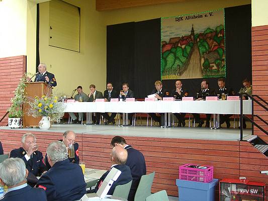 Nachdem gastgebender Bürgermeister Michael Geck den Gästen aus dem gesamten Kreisgebiet die Gemeinde Sulzheim in ihrer Struktur vorgestellt hatte, sprach Landrat Harald Leitherer angesichts der im Landkreis Schweinfurt in den letzten Jahren ständig steigenden Zahl schwerer Verkehrsunfälle von einer großen psychischen Belastung, mit der sich die Einsatzkräfte der Feuerwehren konfrontiert sähen, vor allem junge Wehrleute hätten hier einiges zu verdauen, so Leitherer.