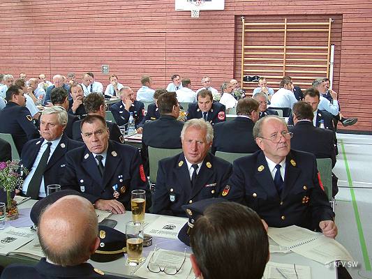 Der ausführliche Leistungsbericht von KBR Vollmuth gab den Anwesenden einen guten Gesamtüberblick über die Tätigkeiten der Feuerwehren im Landkreis Schweinfurt im Jahr 2001, die weit über das Helfen bei Notfällen aller Art hinausreichte. Zwar weist die Einsatzstatistik insgesamt 782 Einsätze aus - darunter 210 Brandbekämpfungen, 462 technische Hilfeleistungen, 66 Sicherheitswachen und 44 Fehlalarmierungen -, bei denen 7506 Feuerwehrdienstleistende 12 922 Stunden tätig waren, aber ein in Zahlenwerten kaum fassbarer weiterer Arbeitsschwerpunkt war die Ausbildung.
