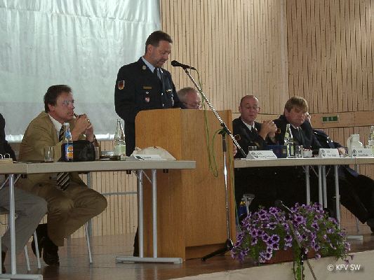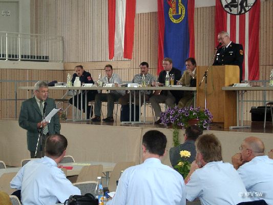 Über die Neufassung der Einsatzberichte informierte Kreisbrandinspektor Peter Höhn. Außerdem wies er darauf hin, dass die Internetseiten des Kreisfeuerwehrverbandes inzwischen den 100 000 Besucher verzeichnet hätten. Kreisbrandinspektor Peter Hauke stellte das Konzept der Unterstützungsgruppe "Örtliche Einsatzleitung" und deren Einbindung in den Katastrophenschutz des Landkreises vor. Im Anschluss daran übergab Landrat Leitherer das neue, 90 000 Euro teuere Einsatzleitfahrzeug der Kreisbrandinspektion.