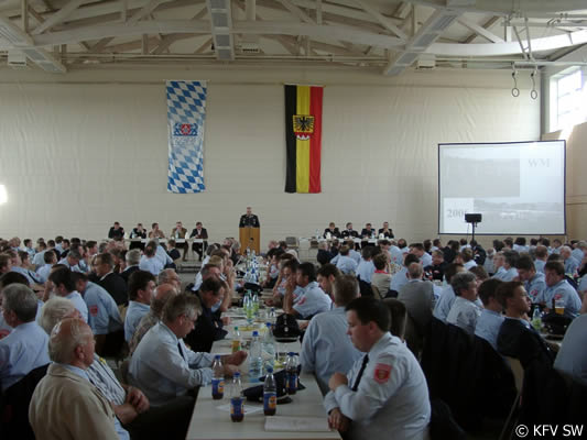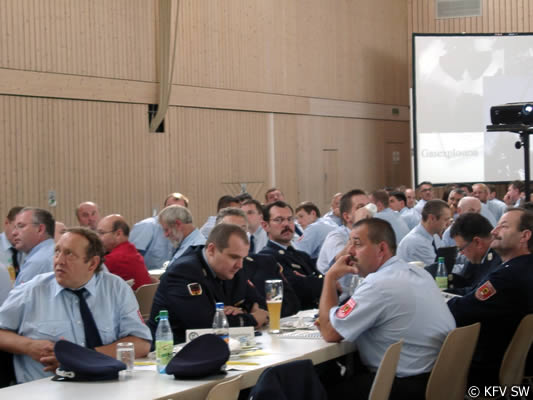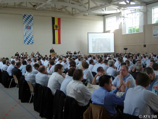 Kreisbrandinspektor Peter Hauke informierte über das Katastrophenführungs- und Gefahrgutkonzept des Landkreises. Hier lobte er den guten Ausbildungsstand und Zusammenhalt des umstrukturierten AC-Zuges unter der Führung von Kreisbrandmeister Holger Strunk. Ausrichter des Kreisfeuerwehrtages war die Freiwillige Feuerwehr Theilheim.