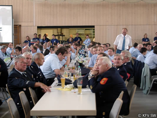 Zum größten Brandeinsatz des vergangenen Jahres hatte sich das Feuer in einem Grafenrheinfelder Installationsbetrieb entwickelt. Hier waren 14 Feuerwehren, die Erkunder Stadt und Land, Atemschutzwerkstatt, die Unterstützungsgruppe der örtlichen Einsatzleitung (UGÖEL) sowie die Notfallseelsorge im Einsatz. Die im Berichtsjahr gefahrenen Einsätze seien von 887 im Jahr 2005 auf 1056 gestiegen, was 20 Prozent mehr an Einsätzen entspreche. Vollmuth dankte seinem Team und den Feuerwehren für das große Engagement. Dank sprach er den Betreuern der Internetseite des Kreisfeuerwehrverbandes aus. Hier habe sich innerhalb eines Jahres die Zahl der Besucher von 450.000 auf 650.000 erhöht.