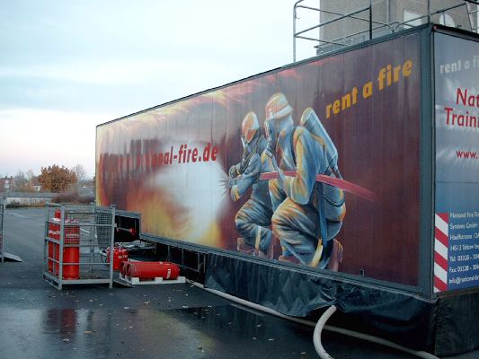 Um diesem Mangel entgegen zu wirken, haben mehrere ausländische und mittlerweile auch deutsche Firmen aus dem Bereich der Sicherheitstechnik mobile Brandsimulationsanlagen unterschiedlicher Größe und Ausstattung entwickelt. Zumeist sind die Anlagen als Lkw-Anhänger oder Sattelauflieger konzipiert und somit völlig ortsunabhängig einsetzbar.