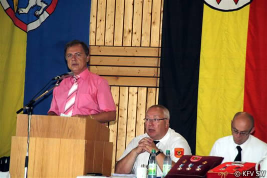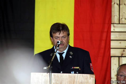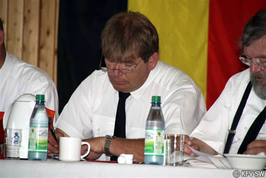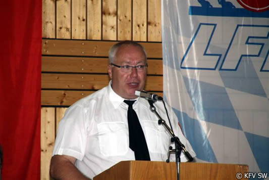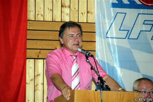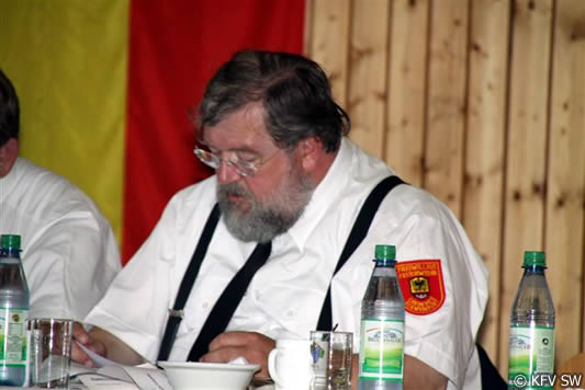 Heiße Temperaturen herrschten auf dem sonntäglichen Treffen, unter dem politischen Schirm von Bürgermeister Günther Jakob und dem Landrat. Hitzig ging es auch nach einem ironisch-süffisanten Vortrag von Kreisbrandinspektor Gottfried Schemm (Gerolzhofen) zu: Einsparbestrebungen, wie sie bei vielen Gemeinderäten vorherrschen würden, könnten dazu führen, dass es künftig etwa nur noch drei Feuerwehrstützpunkte in einem Landkreis gebe. Die Frist von 13 bis 17 Minuten, um einen Menschen aus einem brennenden Gebäude zu retten, könnte dann nicht mehr eingehalten werden. Reine Berufsfeuerwehren kämen auch finanziell teurer, wären technisch aufwendiger, so Schemm im überspitzten Beitrag, mit Blick auf Planspiele in Mecklenburg-Vorpommern.
