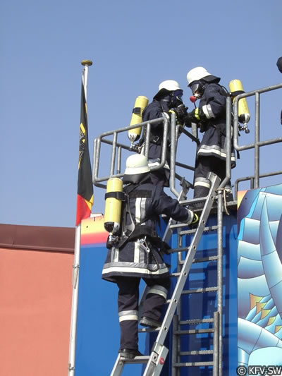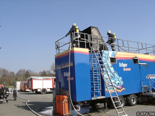 Wie schon in der Meldung vom 12.02.2004 angekündigt, war am 28. März 2004 der Brandübungscontainer der Firma Dräger im Landkreis Schweinfurt.